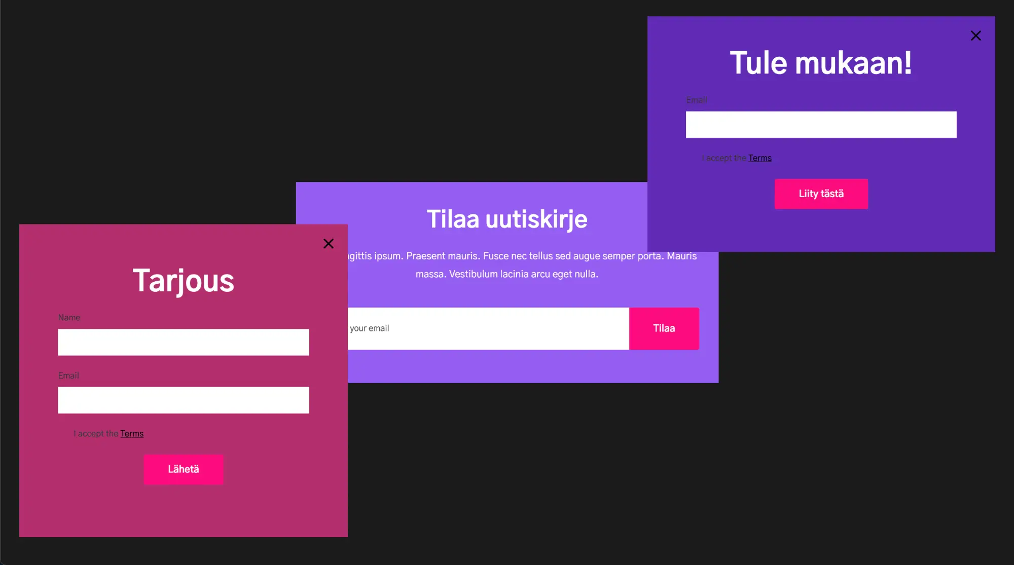 Lisää 2-3 pop-upia heti evästevaroituksen perään